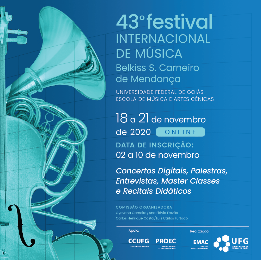 As inscrições estão encerradas mas os links para palestras e recitais serão disponibilizados no site do Festival. Pode entrar pela página da EMAC UFG.
