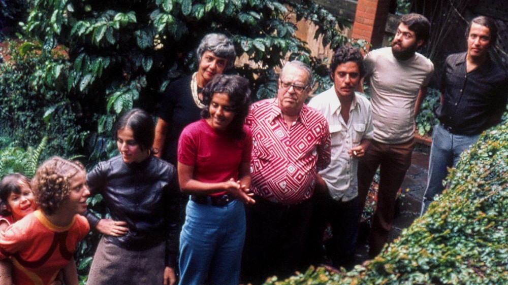 Família Buarque de Hollanda reunida no jardim da casa da Rua Buri, 35: (esq. para dir.): Cristina, Ana, Pii, Maria Amélia, Sérgio de Hollanda, Chico, Sérgio e Álvaro | Acervo Família Buarque de Hollanda