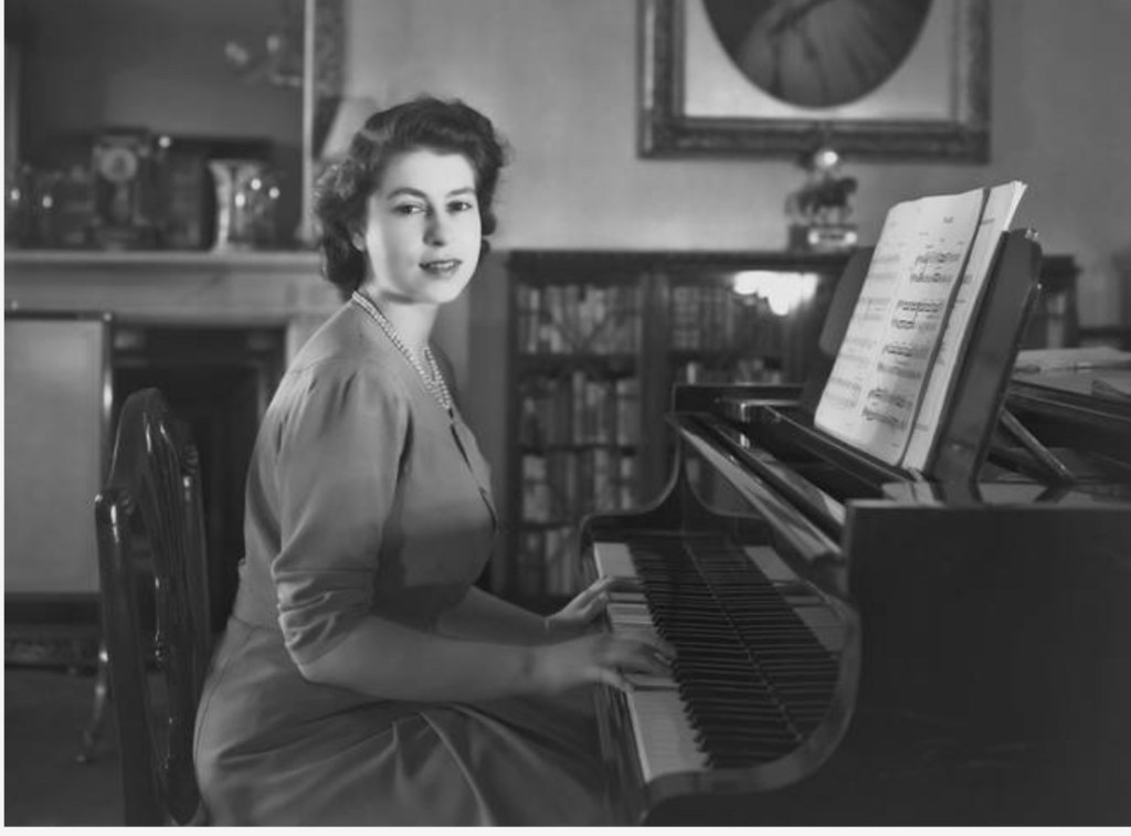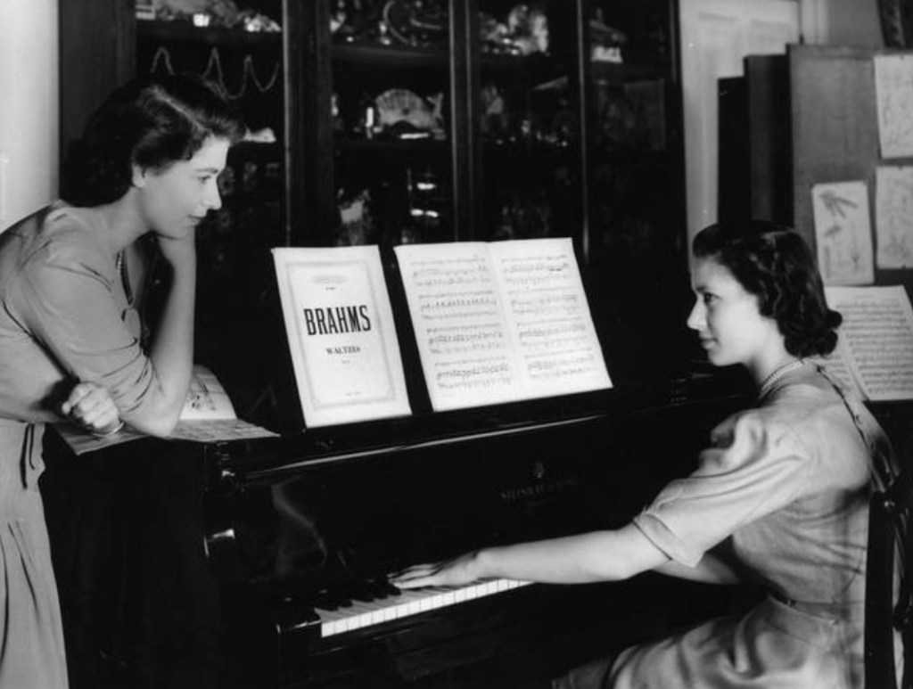Aos 11 anos, a princesa Elizabeth aprendeu a tocar piano. A princesa Margaret era mais conhecida por ser a cantora e pianista da família, enquanto Elizabeth tinha uma paixão maior pelo ar livre, cavalos e cães, que ela nutriu ao longo de sua longa vida, sem deixar de cultivar o gosto pela música.
