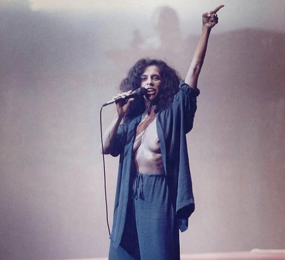 Já por volta de 1994, Gal exibiu os seios nos palcos do Rio de Janeiro, ao cantar “Brasil”, de Cazuza. Além do figurino inesperado, uma camisa larga que podia ser desabotoada com facilidade. De peito aberto, Gal avançou pelos anos sem medo de mostrar a sua voz e a sua coragem.
