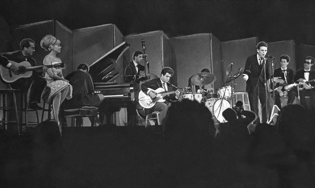 Registro do festival Bossa Nova at Carnegie Hall, em 1962, com Roberto Menescal, Ana Lúcia, o conjunto de Oscar Castro Neves, Carlos Lyra, Normando e Chico Feitosa